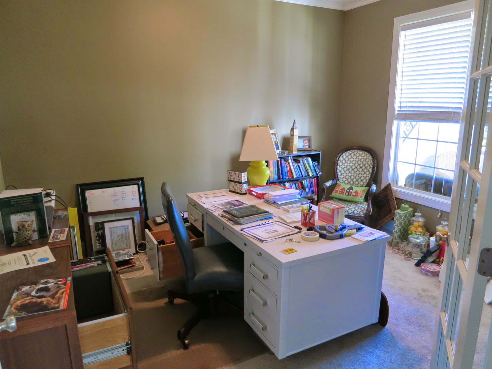 So much STUFF! Everywhere! I cleared it all out and only brought back in what I actually needed in the office. The dining room still looks pretty messy but that's for another day :)